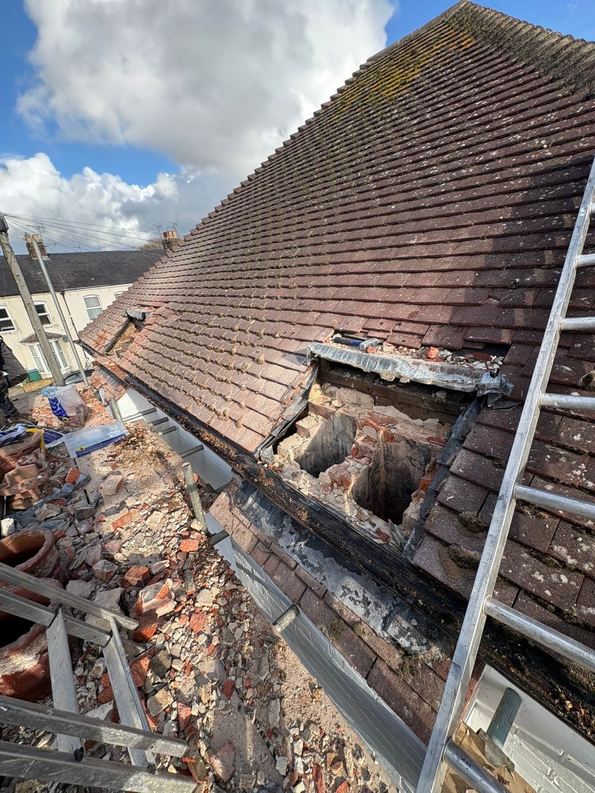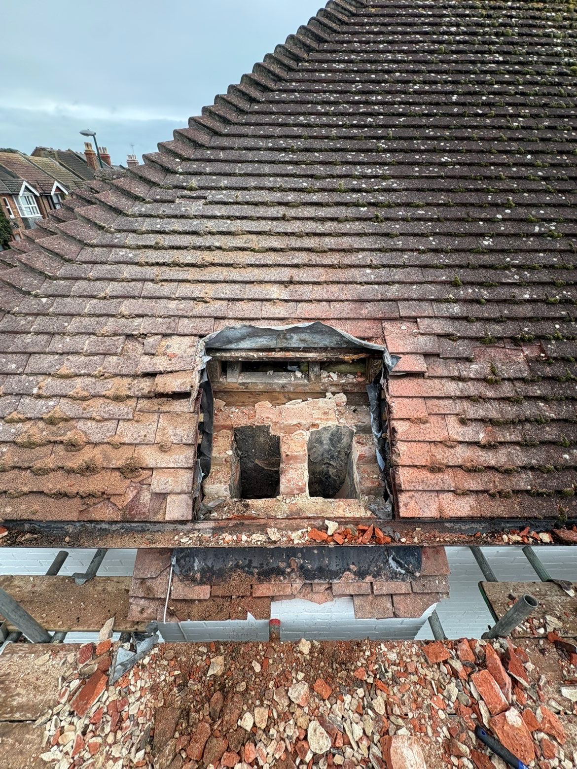 Repoint and restore chimney brickwork to prevent moisture ingress and structural damage.